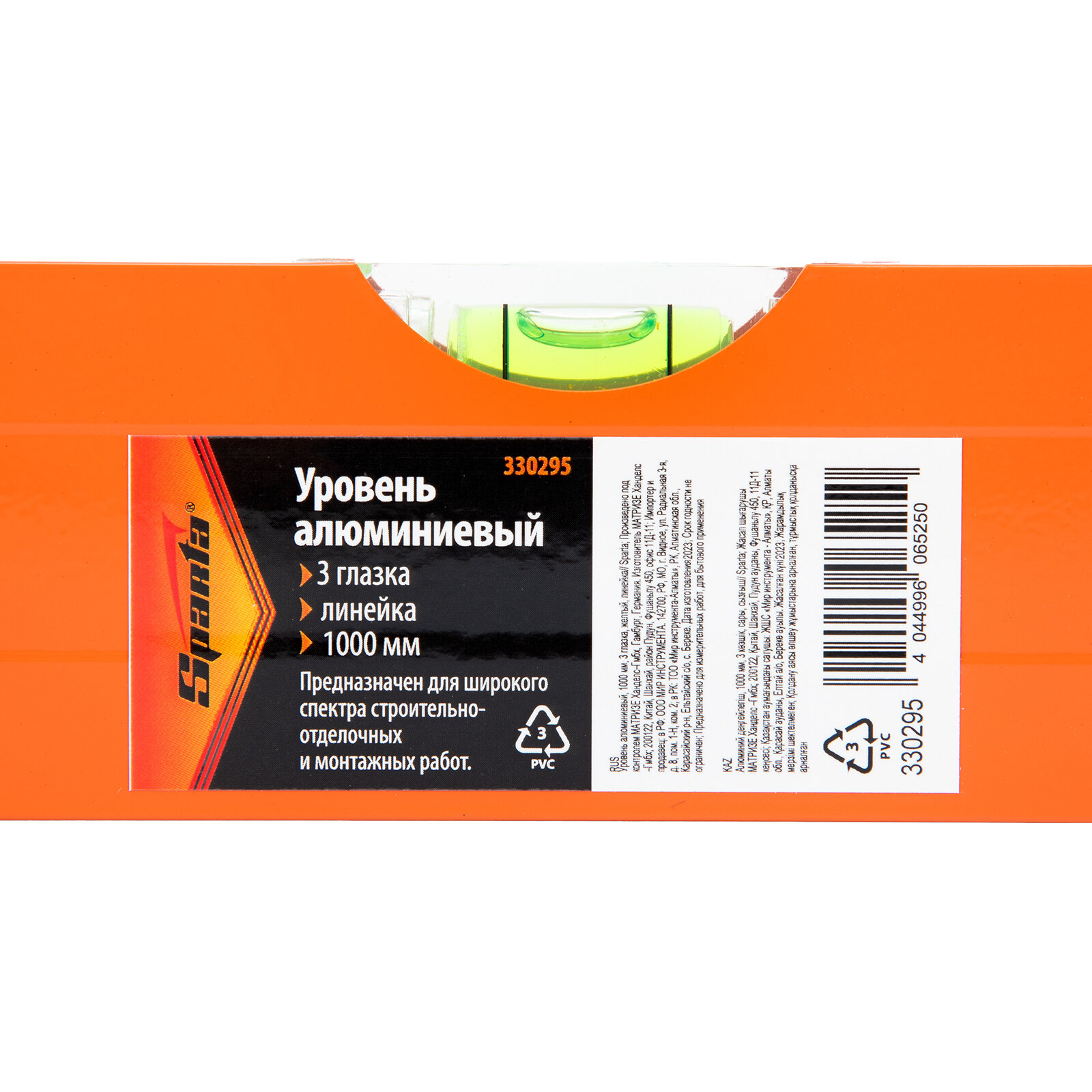 Уровень алюминиевый, 1000 мм, 3 глазка, желтый, линейка Sparta (330295) интересное:
