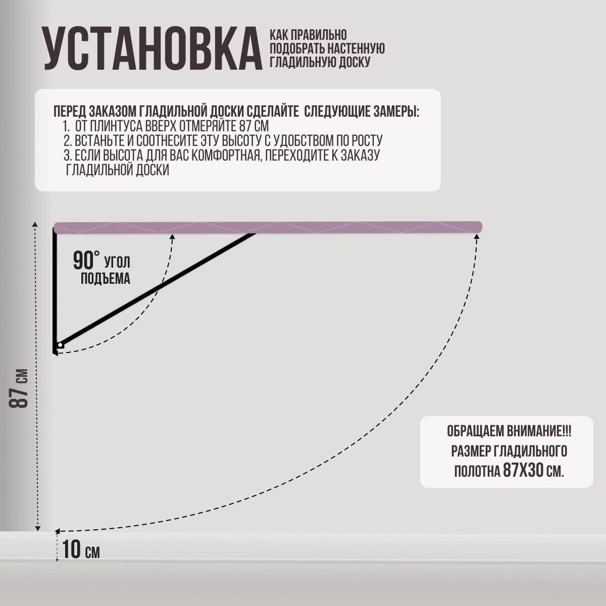 | Дополнительная информация | складная; имеется усиленное металлическое крепление к стене; можно установить на необходимой высоте, удобной для глажки с учетом роста |