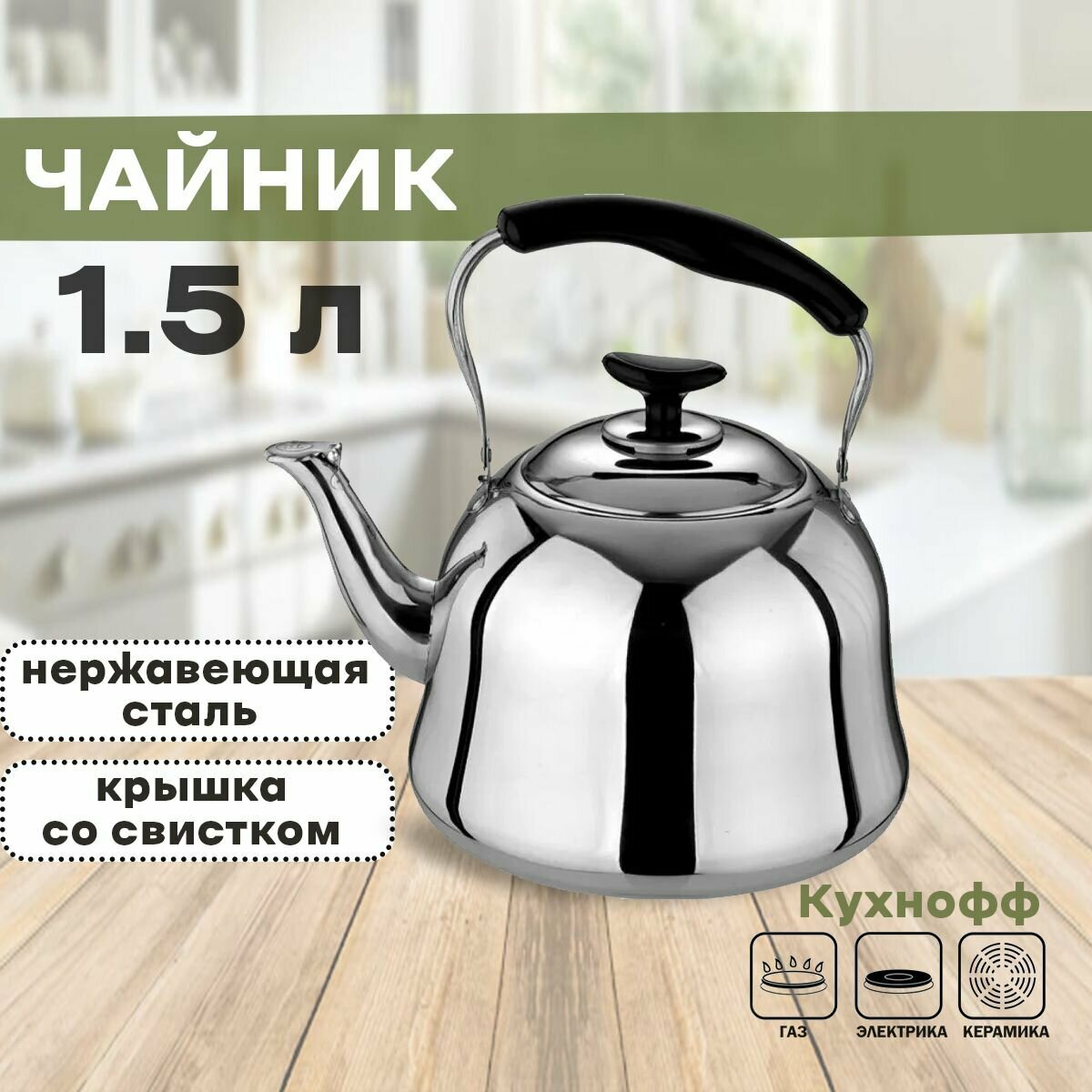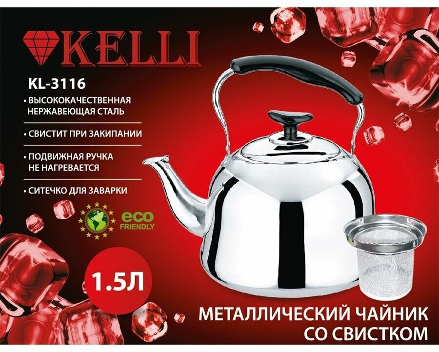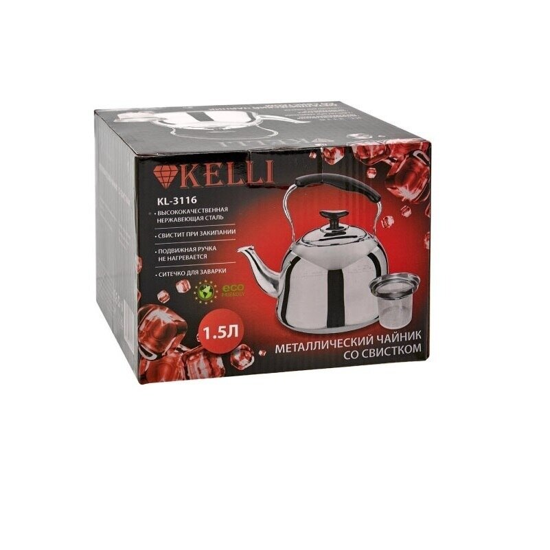 Купить Kelli Чайник со свистком KL-3116 1.5 л, серебристый