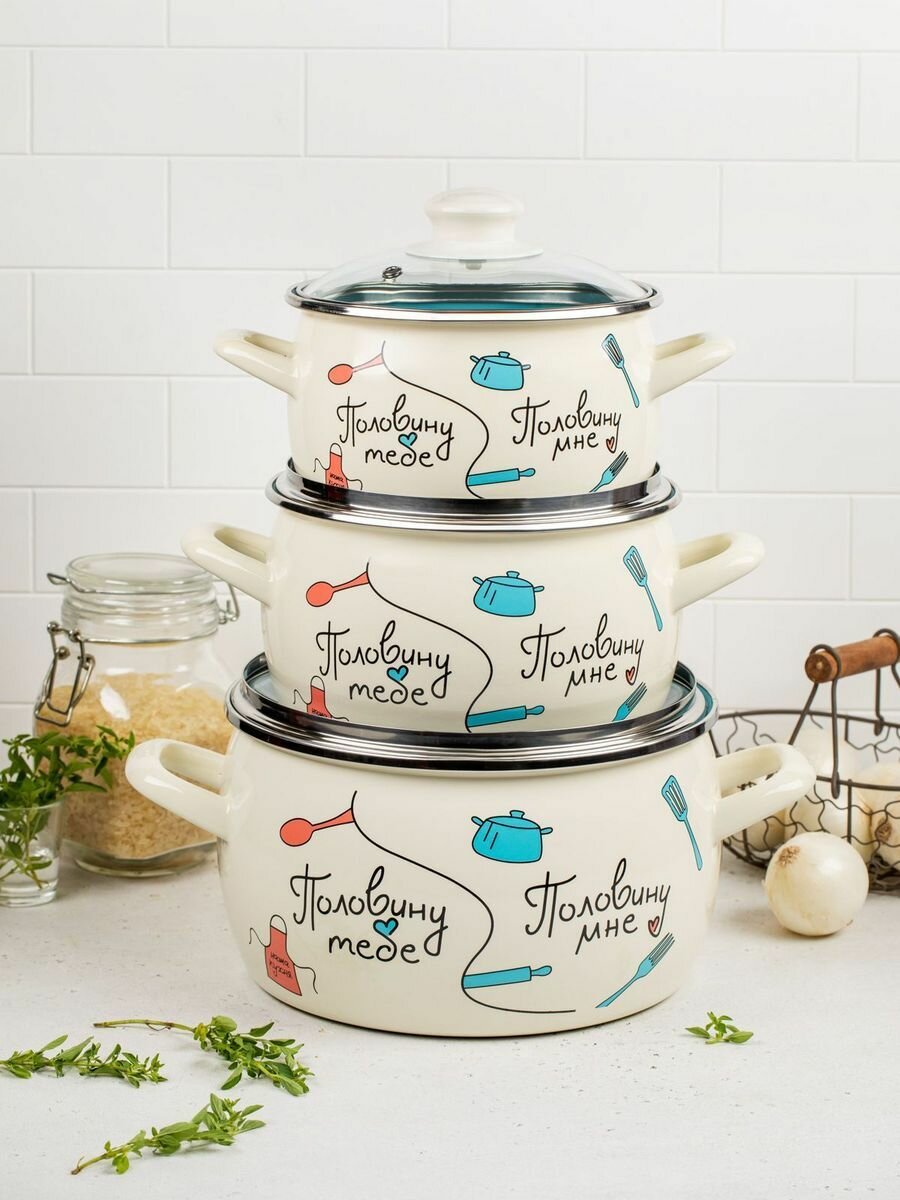 Купить Набор кастрюль эмалированных с крышками 2,2 л 3,1 л 5,4 л