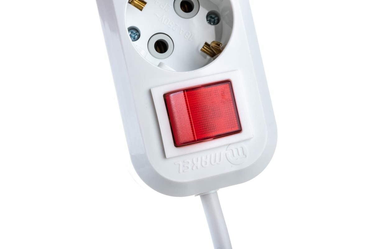 Удлинитель Makel с выключателем 3 метра 3 гнезда с заземлением электрический белый, MGP213
