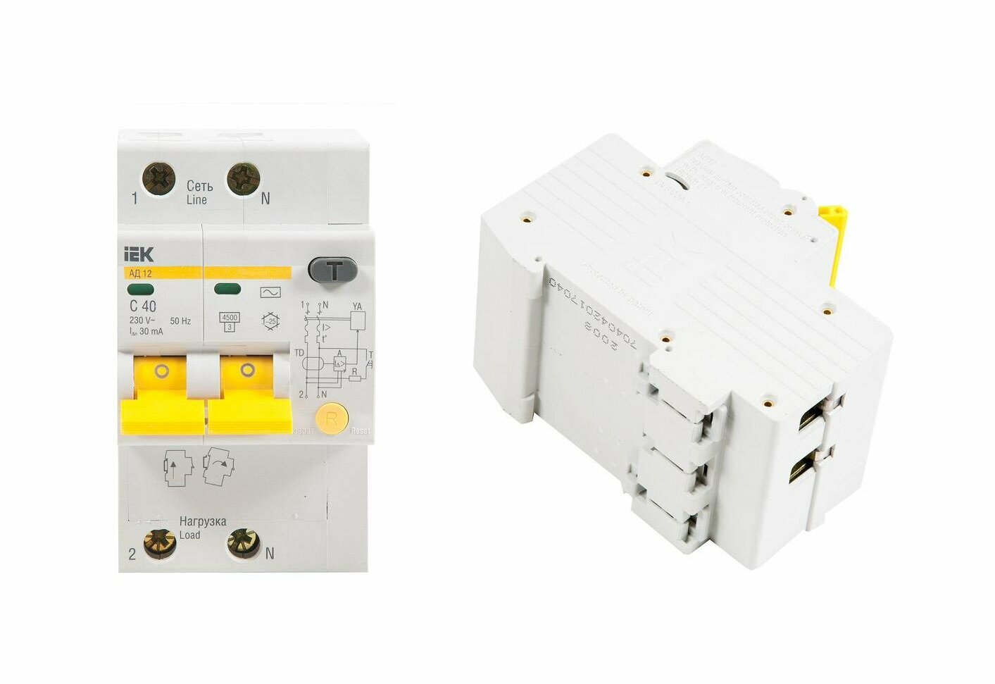 Дифференциальный автоматический выключатель АД12 2 полюса, 40А, Тип AC, х-ка C, 30мА MAD10-2-040-C-030 IEK