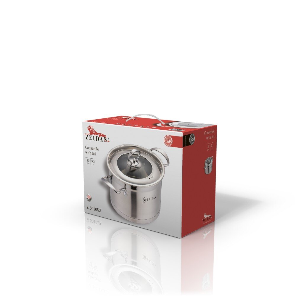 Купить Кастрюля со стеклянной крышкой Zeidan Silver из нержавеющей стали для всех видов плит 3,2 л 20 см