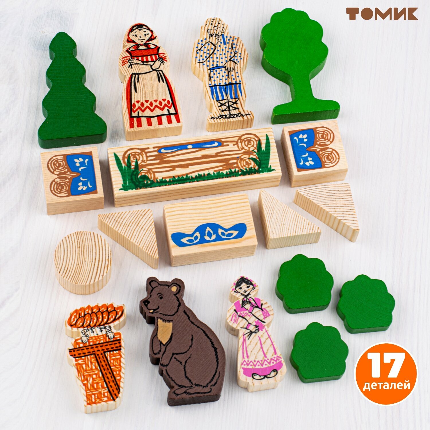 Сказки "Маша и медведь" 17 деталей, деревянный конструктор Томик 4534-9