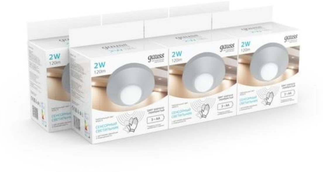 Светильник с/д ДПО 2Вт - с сенсором автон. круг серебро 3*АА Gauss