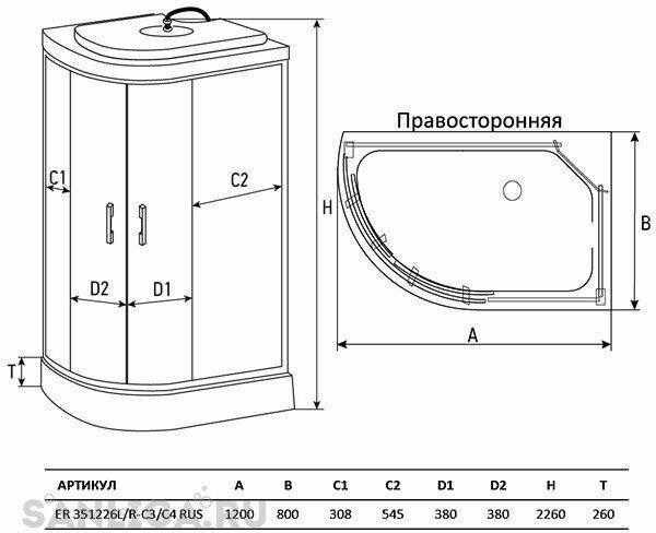 Душевая кабина Erlit ER351226R-C4-RUS (1200*800*2260)