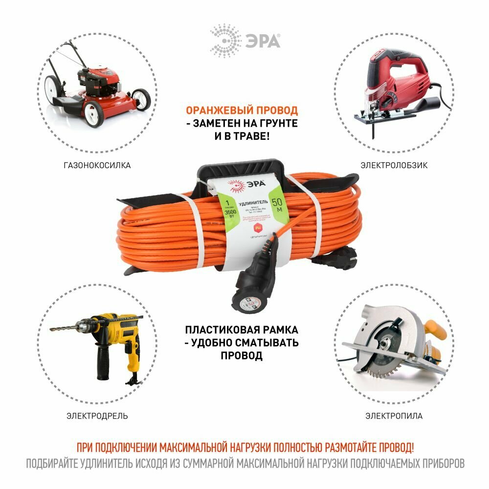 Удлинитель-шнур ЭРА UFx-1e-3x1.5-50m-IP44, б/з, 16А / 3500 Вт оранжевый 50 м 1.5 м²