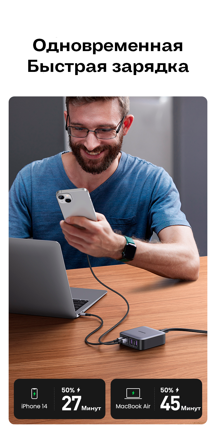 Ниже Вы можете прочитать отзывы на Сетевое зарядное устройство Ugreen CD327 Nexode 2*USB-A+2*USB-C 65W Desktop Fast Charger, черный, ознакомится с подробными характеристиками, посмотреть интересные обзоры и фотографии на Сетевое зарядное устройство Ugreen CD327 Nexode 2*USB-A+2*USB-C 65W Desktop Fast Charger, черный.