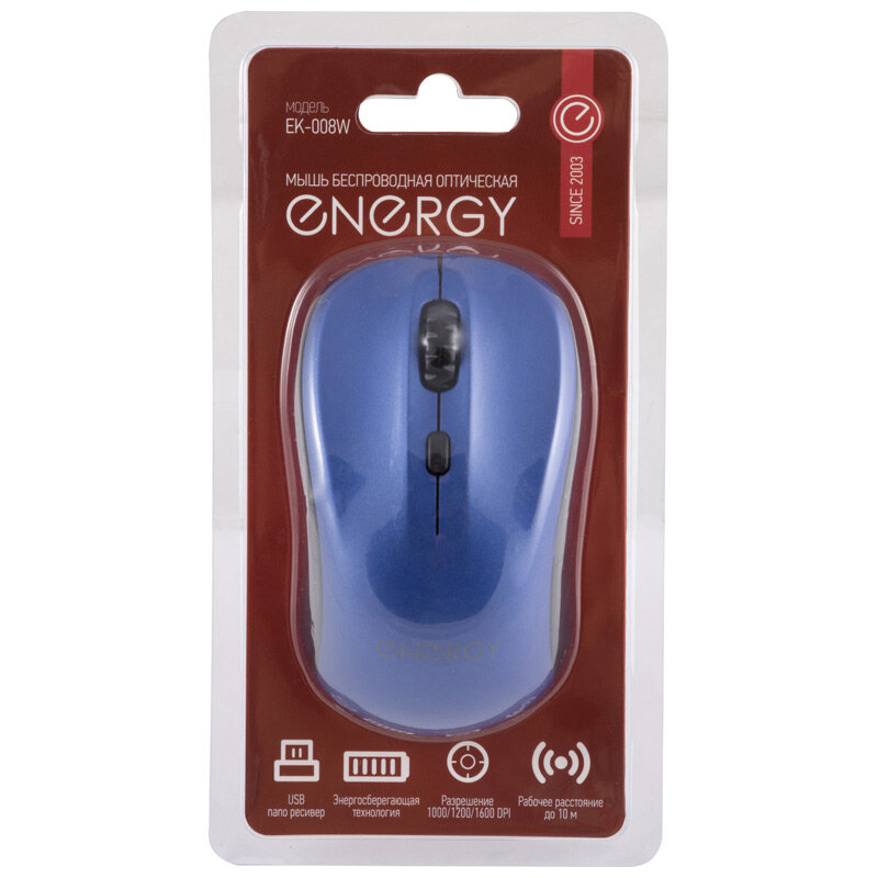Купить Мышь беспроводная оптическая Energy EK-008W, цвет - чёрно/синий