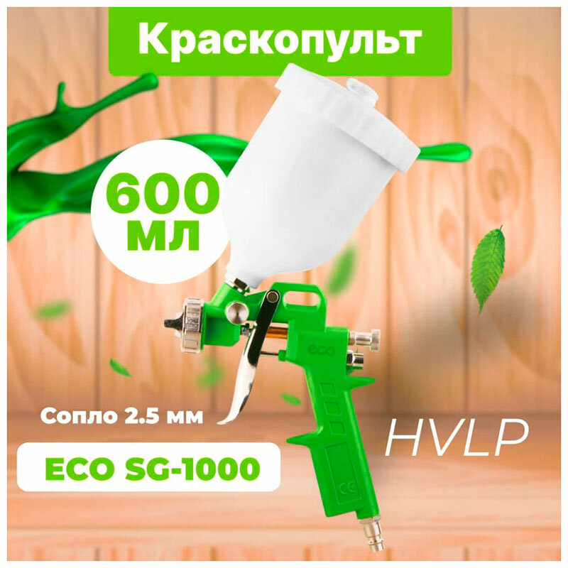 Eco Краскораспылитель SG-1000 (HVLP, сопло ф 2.5 мм, верх. бак 600 мл) (SG-1000H25U)