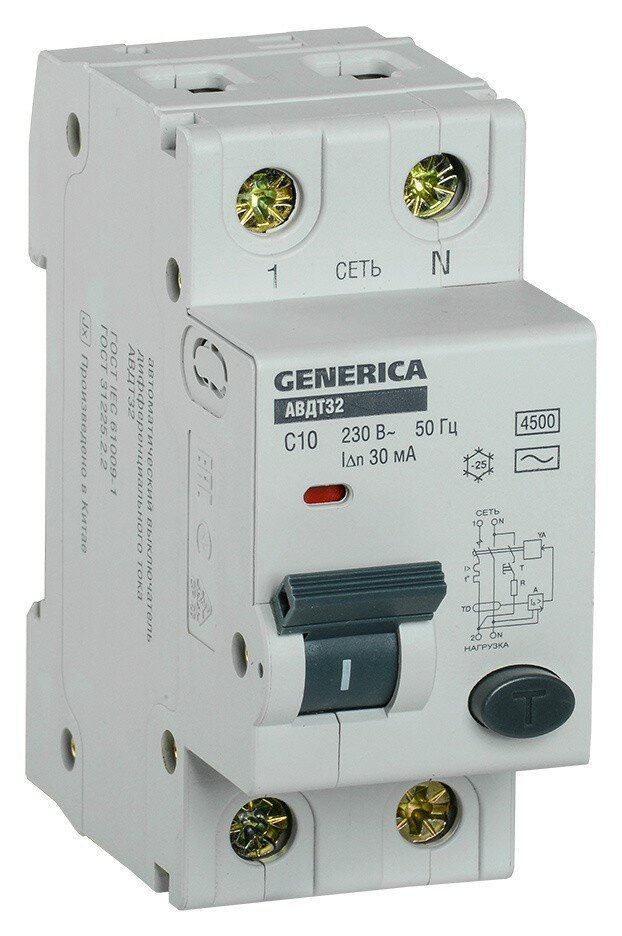 СохранитьВыключатель автоматический дифференциальный АВДТ 32 1п+N 10А C 30мА тип AC GENERICA | код. MAD25-5-010-C-30 | IEK ( 1шт. ) интересное: