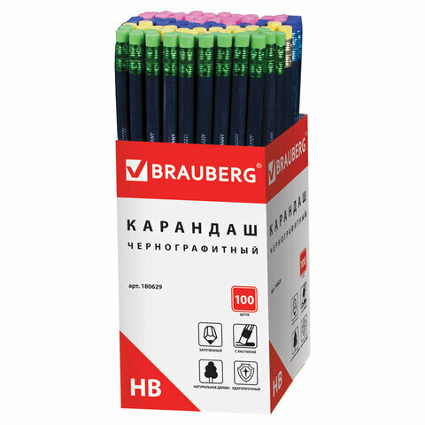 Карандаш чернографитный BRAUBERG, "Black Wood", НВ, с ластиком, черное дерево, заточенный, 180629 интересное: