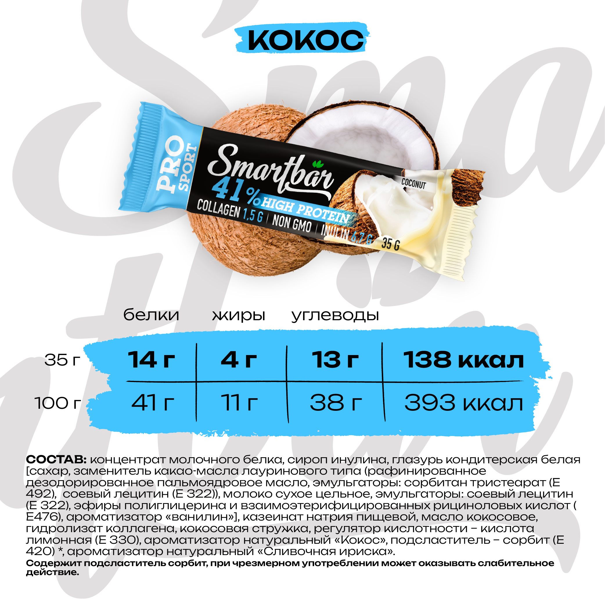 Протеиновый батончик SmartBar Protein Pro 41% "Кокосовый" 35г (25шт)