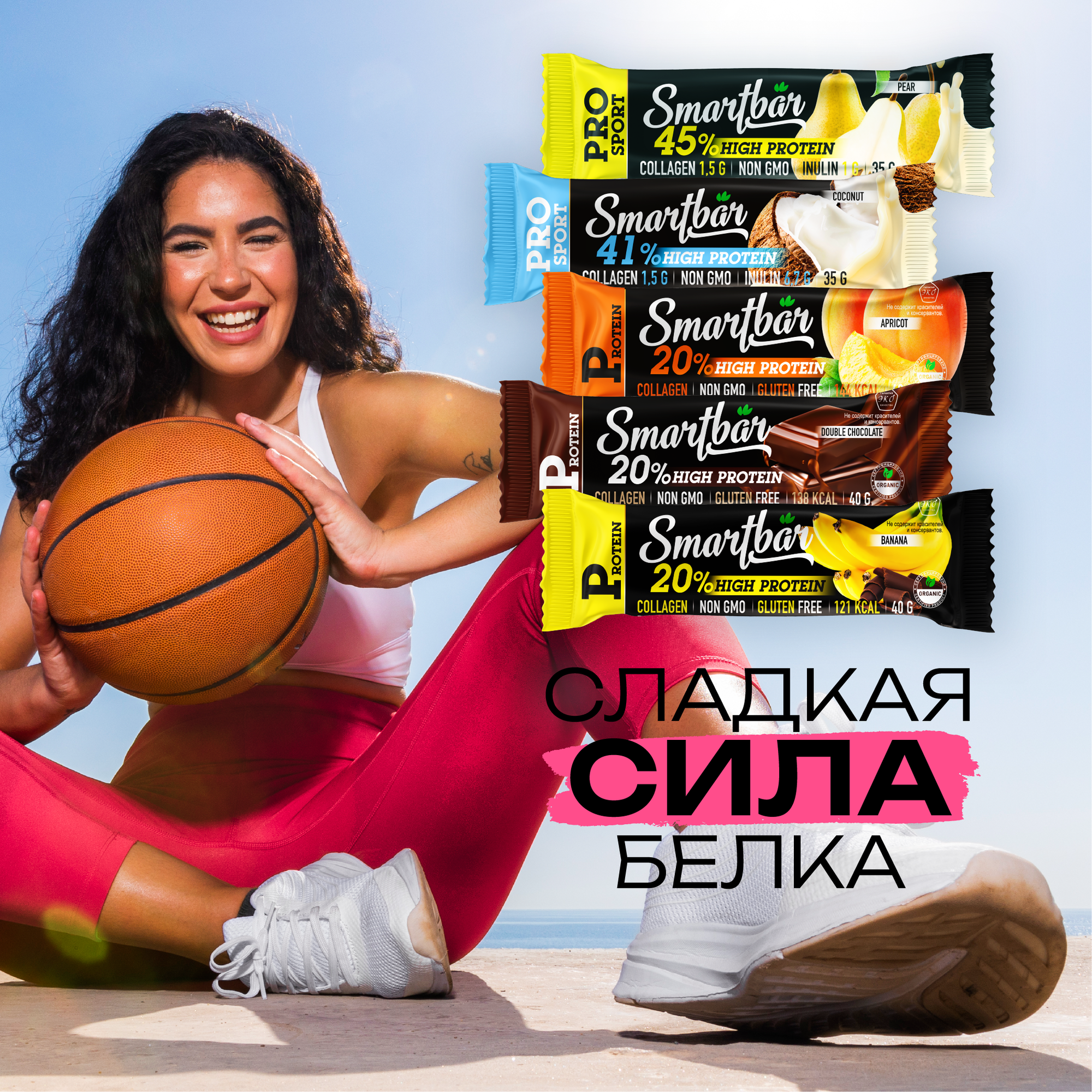 Протеиновые батончики SmartBar Protein Ассорти (Банан, Шоколад, Абрикос, PRO Кокос, PRO Груша), 25 шт.