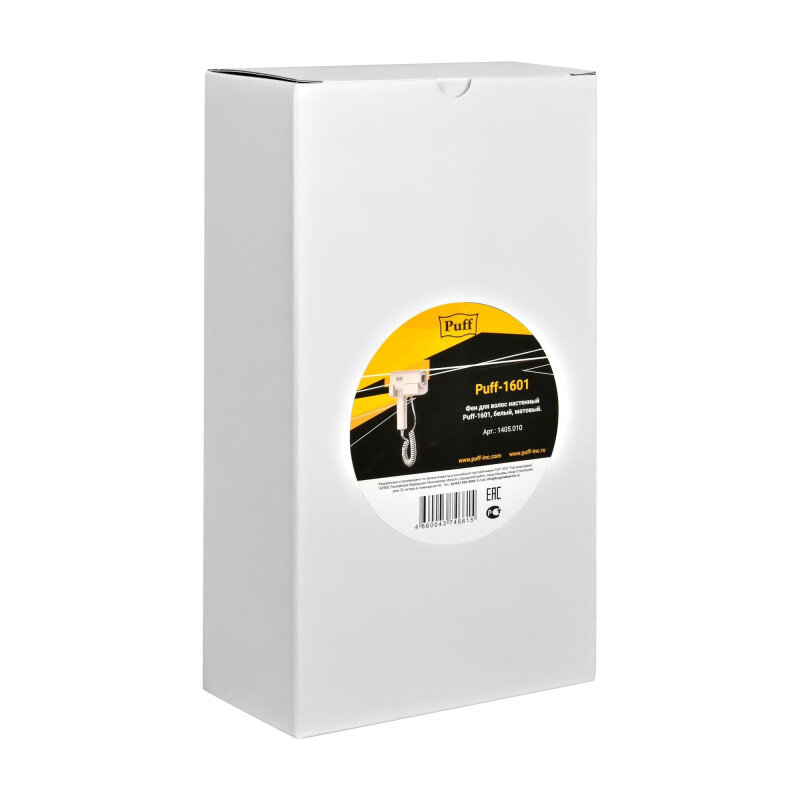 Фен для волос настенный Puff-1601, белый матовый, Арт.: 1405.010