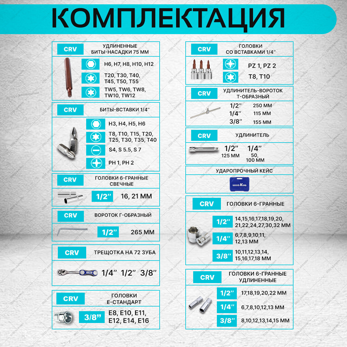 Универсальный набор инструментов в чемодане GOODKING M-10128, трещетка 1/2 1/4 3/8, строительный набор и инструменты для авто