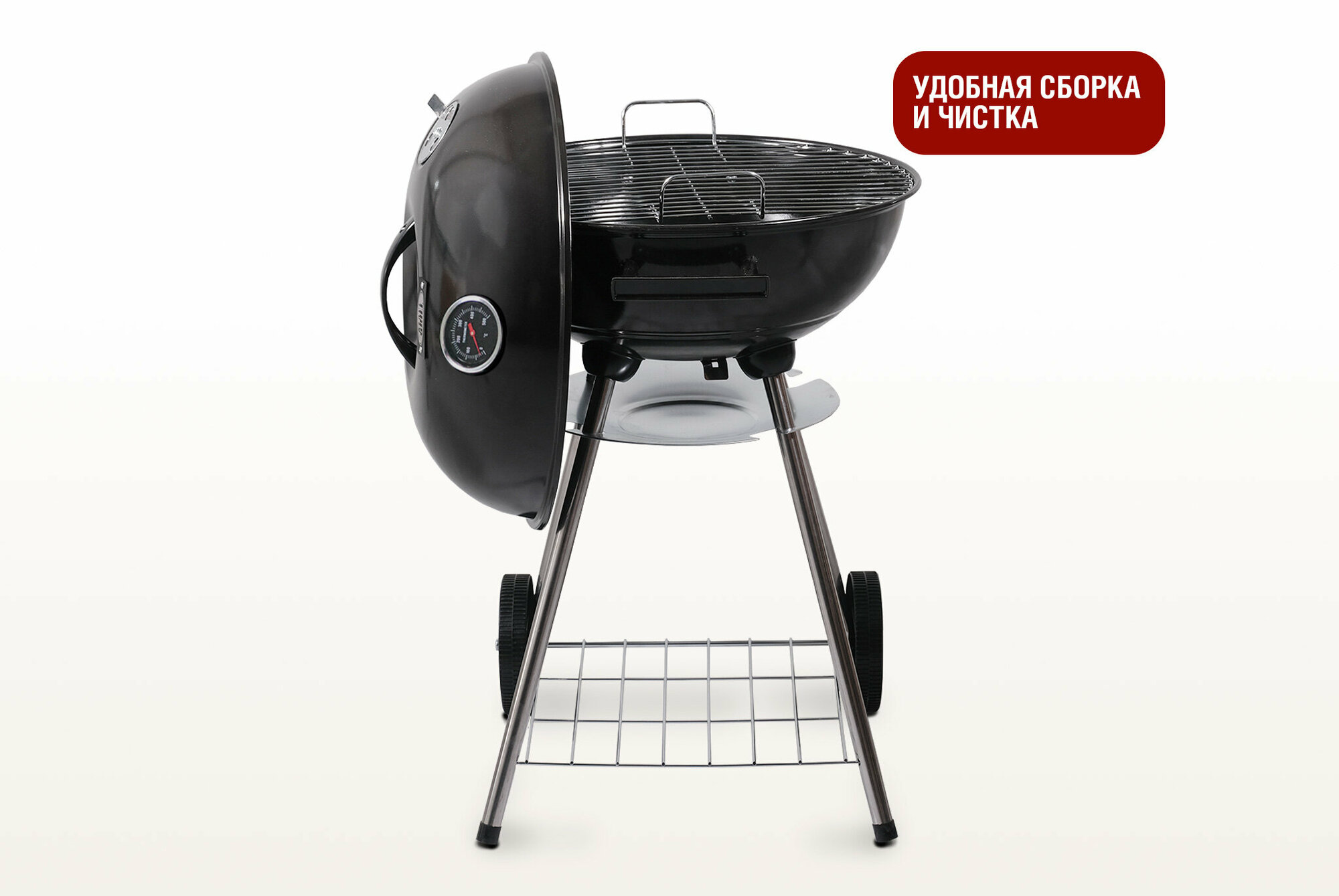 | Особенности | дровница / колёса / крышка / поддон для сбора жира / разборный / термометр |