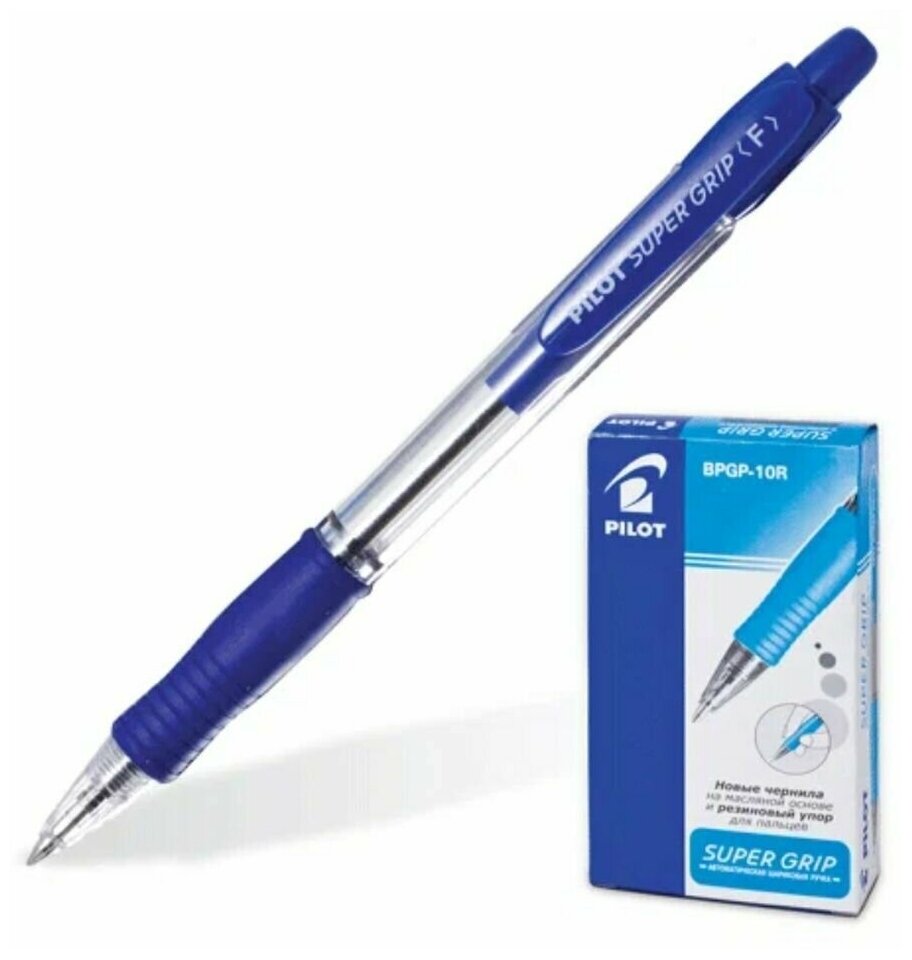 Ручка шариковая масляная автоматическая с грипом PILOT "Super Grip", синяя, узел 0,7 мм, линия письма 0,32 мм, BPGP-10R, BPGP-10R-F, М, 12 штук в упаковке