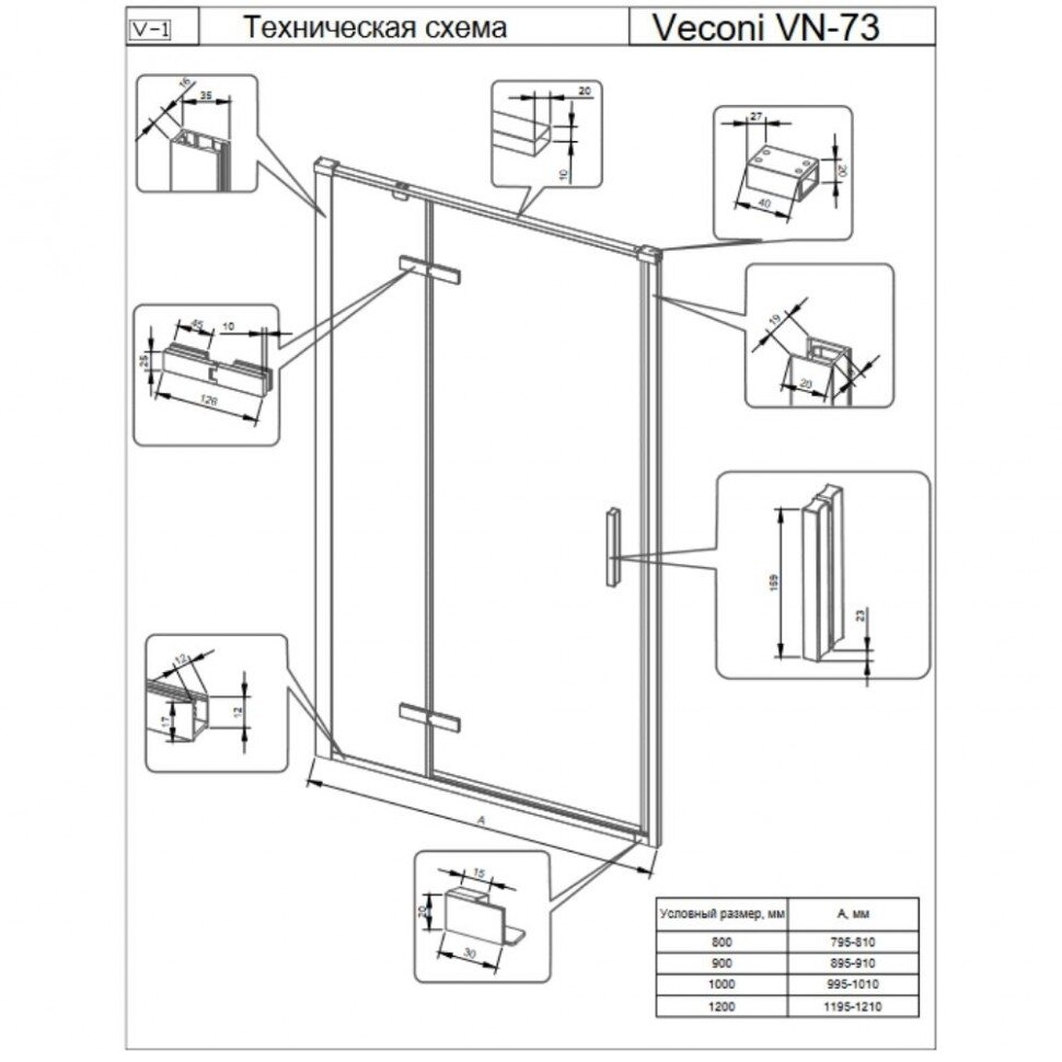 Душевая дверь в нишу Veconi Vianno VN-73 100 см, профиль хром интересное: