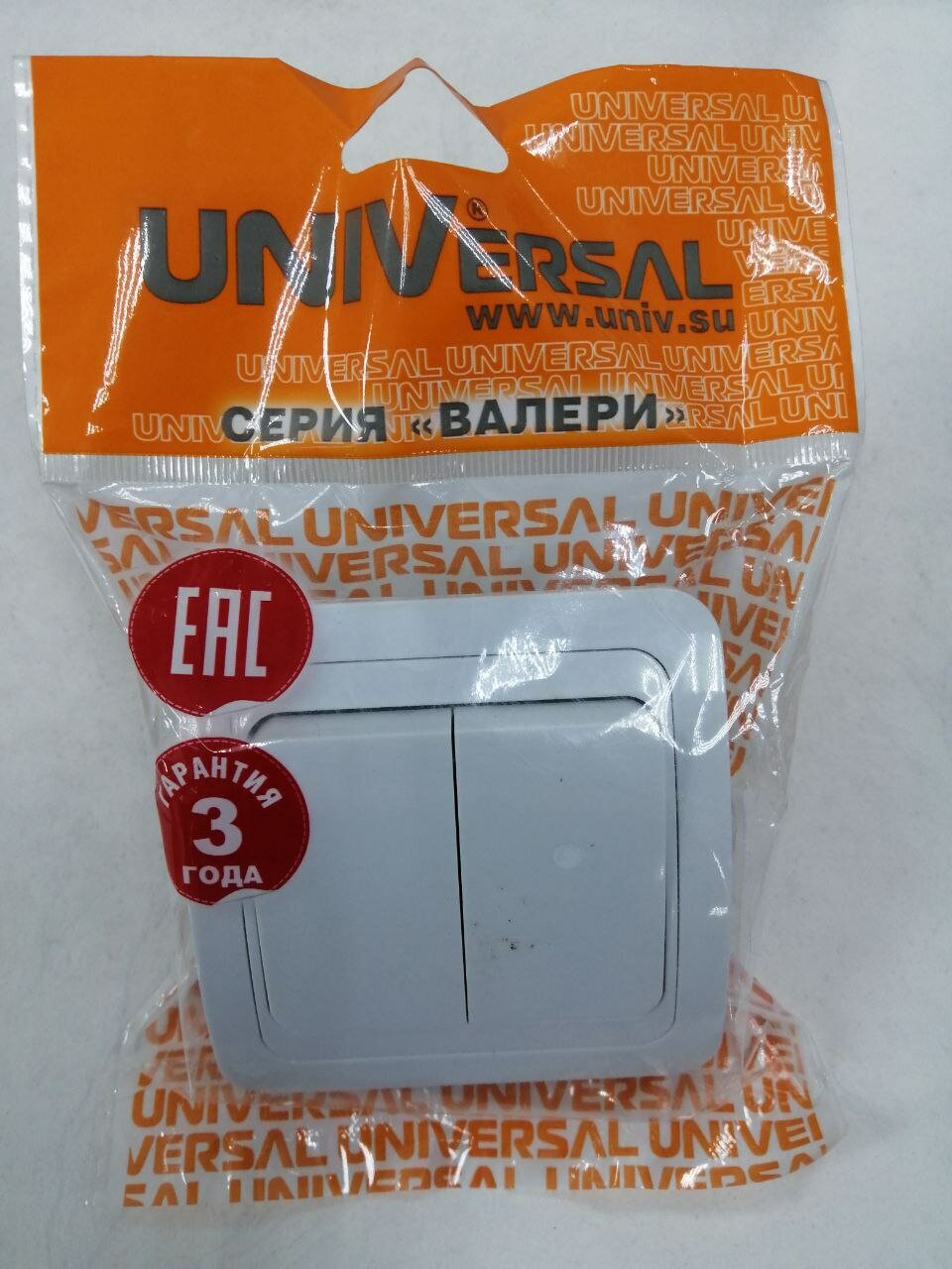Выключатель 2-кл. СП Валери 10А IP20 бел. UNIVersal В0023 ( 1шт. )