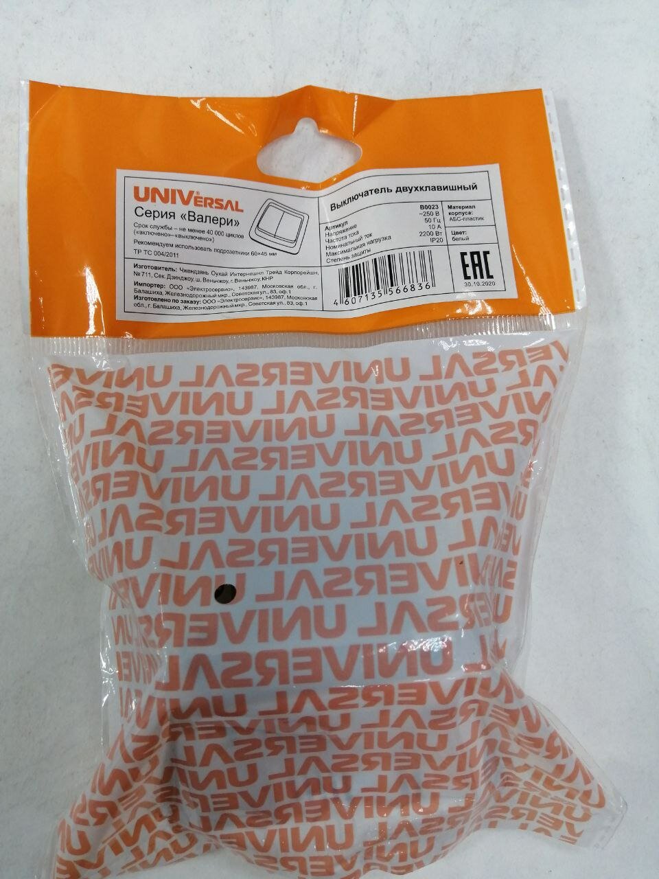 UNIVersal Валери Белый Выключатель 2-клавишный 10А 220В СП В0023