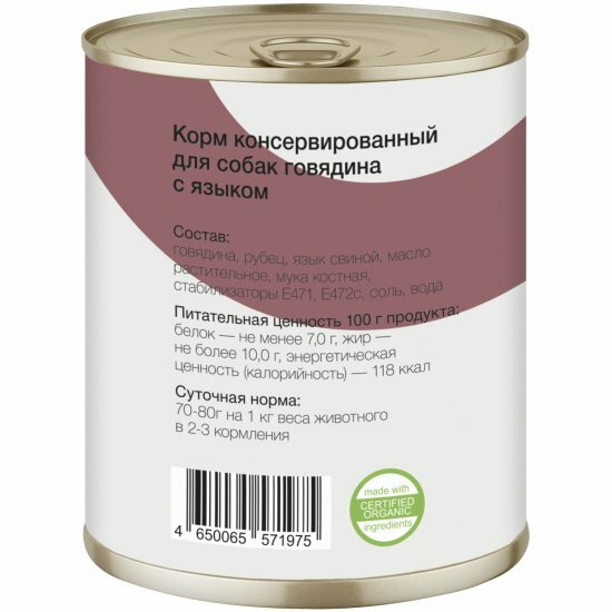 Консервы для собак говядина с языком 0,1 кг х 10 шт.