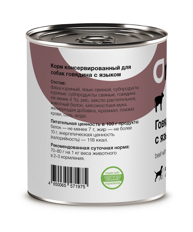 Консервы для собак говядина с языком 0,1 кг