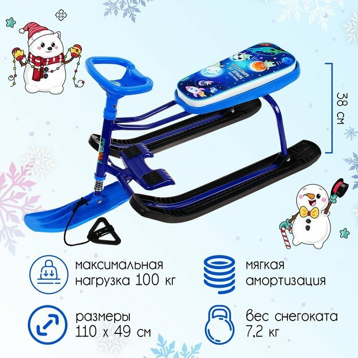 Снегокат Nika, Tимка спорт+1, ТС1+/Г, с гонщиком, синий каркас, спорт руль, буксировачный трос