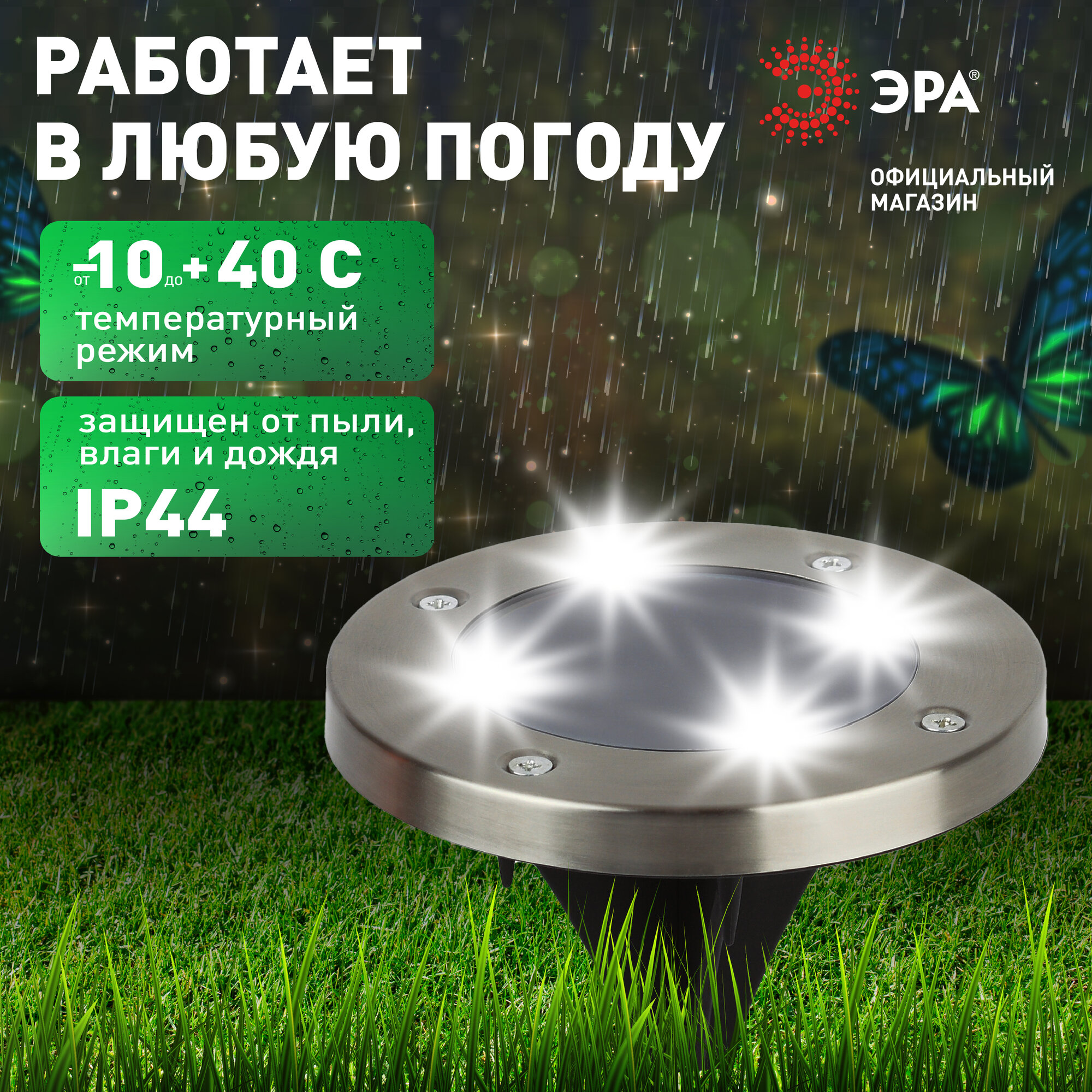 Светильник уличный ЭРА ERAST024-01 на солнечной батарее подсветка Таблетка, сталь, пластик d 11 см