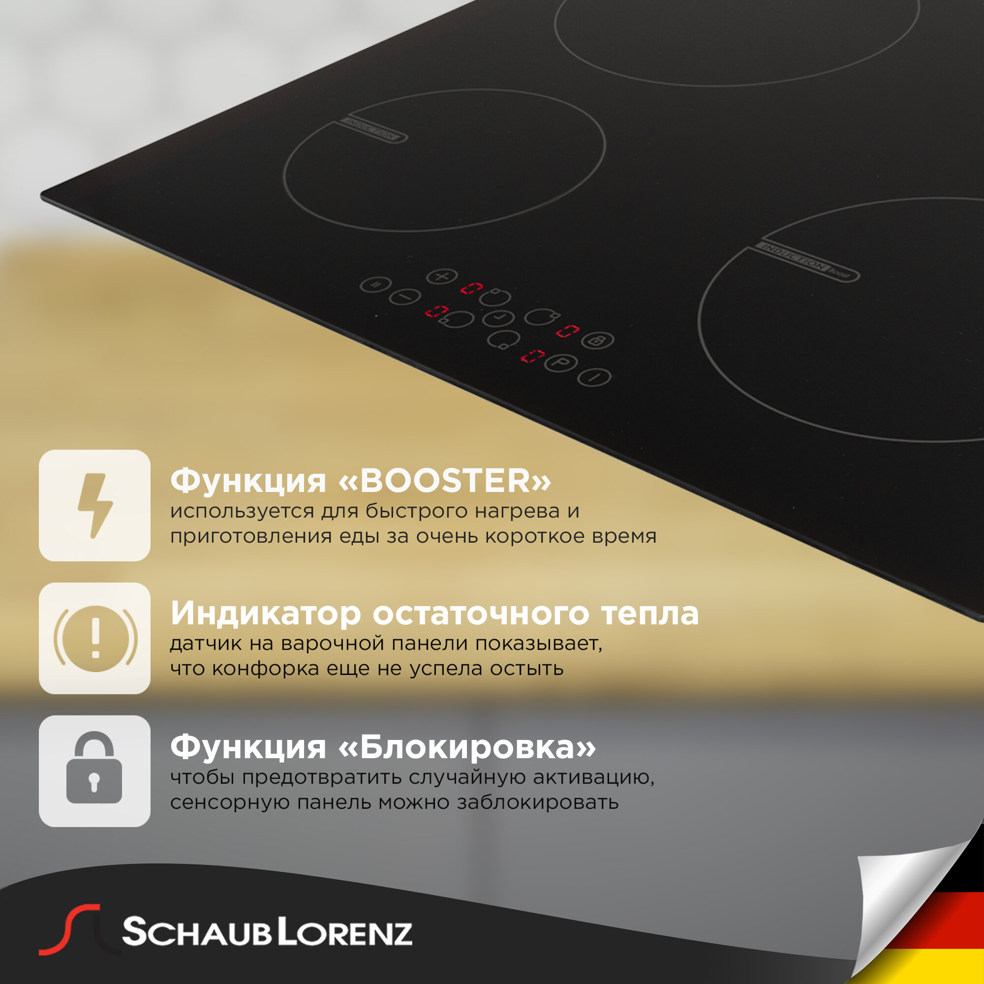 Индукционная встраиваемая варочная панель Schaub Lorenz SLK IY6143, 60см, чёрный, стеклокерамика