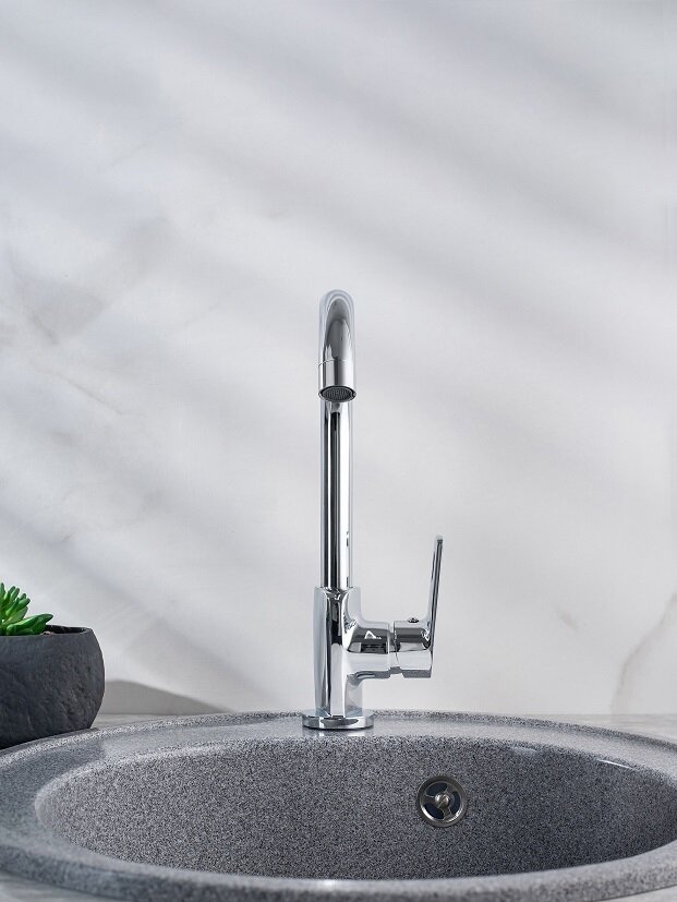 Смеситель для кухни РМС SL134-017F / латунь / поворотный излив / однорычажный интересное: