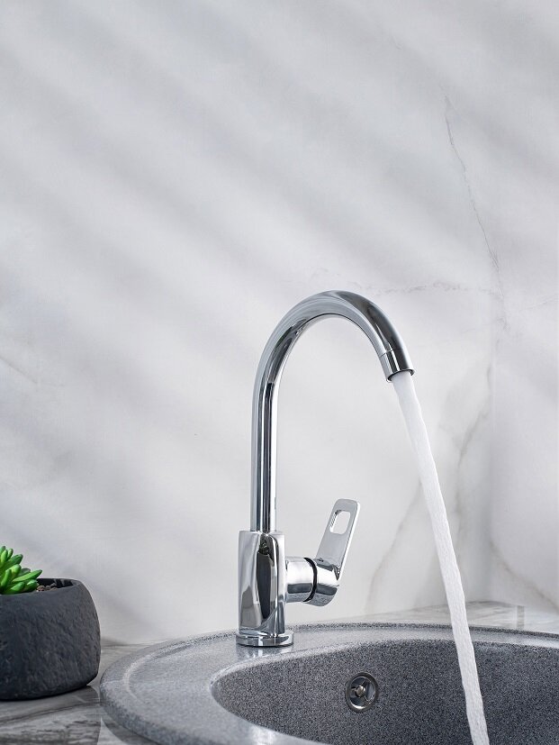 Смеситель для раковины с поворотным изливом на кухню и ванную / кухонный кран для мойки Ростовская Мануфактура Сантехники SL134-017F Хром