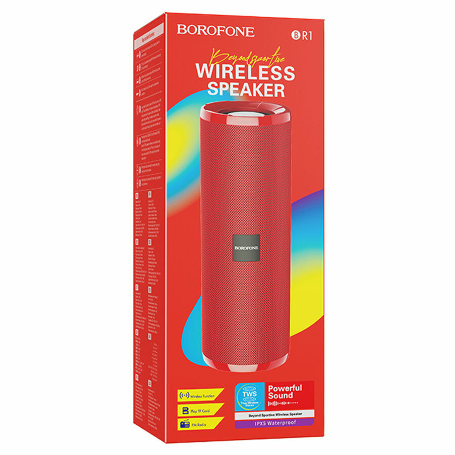 Беспроводная колонка BOROFONE BR1 Beyond sportive, Bluetooth, 1200 мАч, 5 Вт, красный