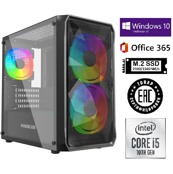 Системный блок SH-Intel Core i5-12400F/H610/DDR4 16Gb/SSD M.2 512Gb/GT 1030 2Gb/Powercase Mistral Evo Air-Black