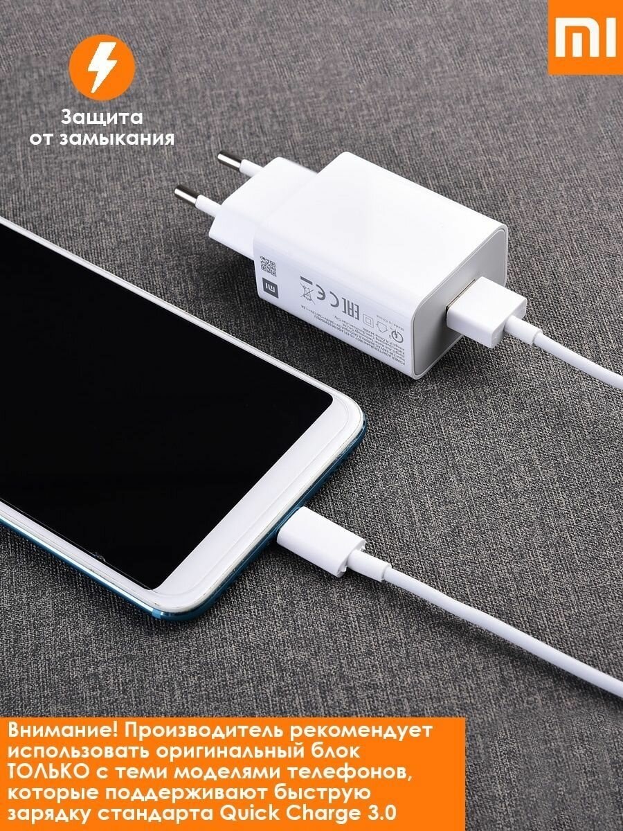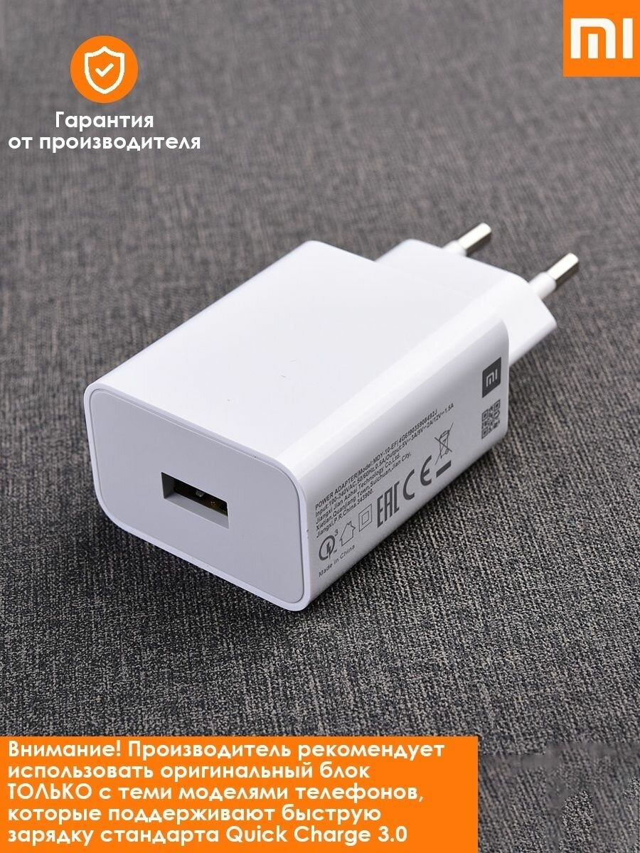 Сетевой адаптер 18W/3А совместим с Xiaomi mdy-10-ef с USB входом Quick Charge 3.0