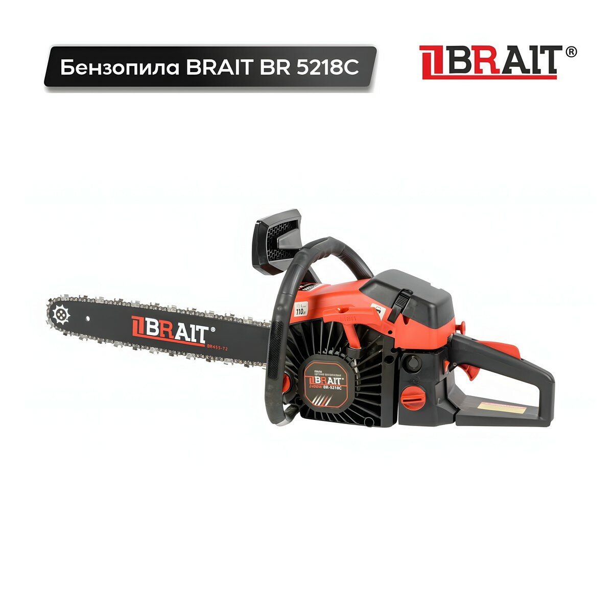 Бензопила цепная бензиновая BRAIT BR 5218C / пила садовая для дачи (шина 45 см, мощность 2400 Вт)