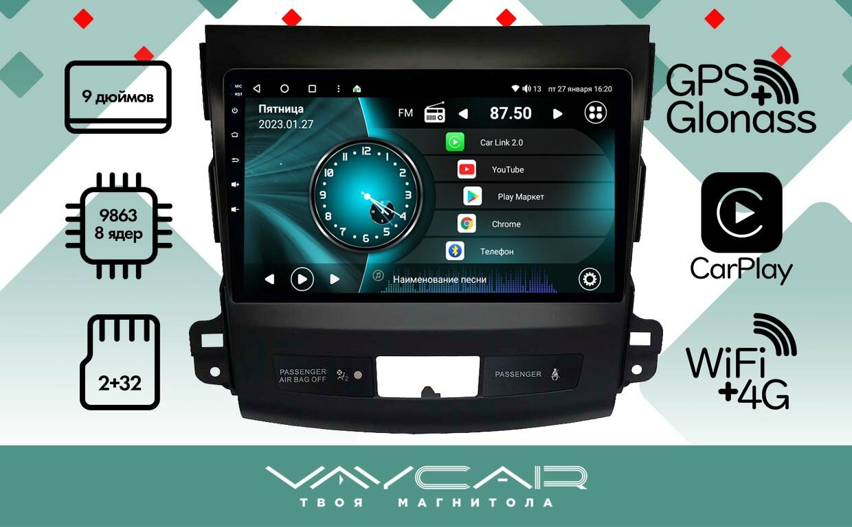 Магнитола Vaycar 09V2 для CITROEN C-Crosser 2007-2011 (Андроид, 2+32, 8 ядер, WiFi, BT, 4G, GPS, QLED 9")