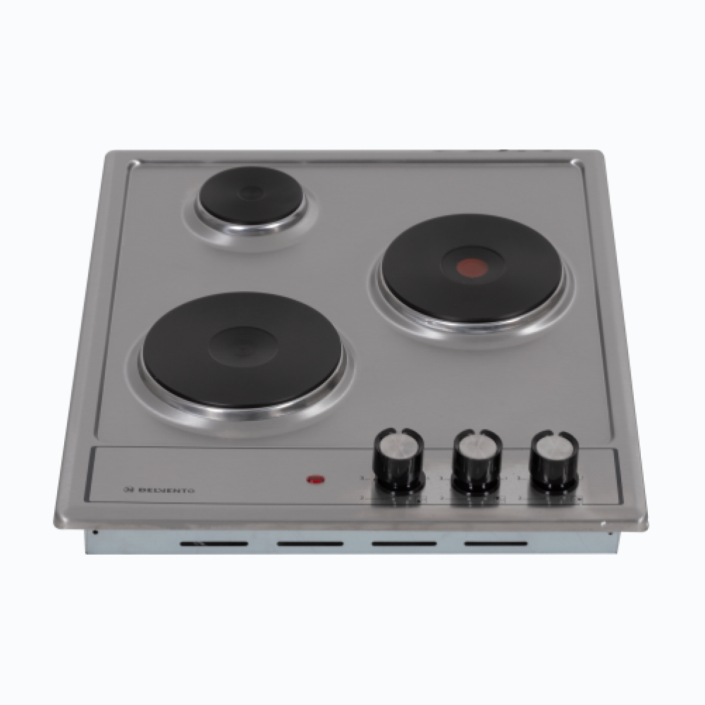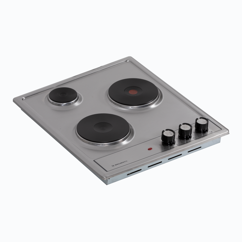 Купить Варочная панель электрическая DELVENTO V45E03M001 / 45 см / 3 конфорки ( 1 быстрый нагрев) / фронтальная панель управления / нержавеющая сталь / цвет серебристый / 3 года гарантии