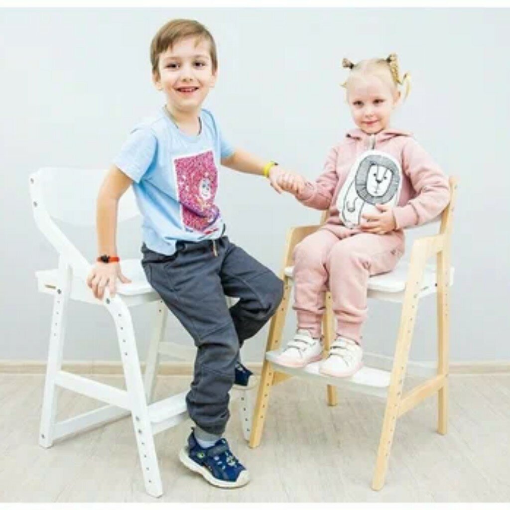 Растущий стул для детей FORLIKE белый, с подлокотниками, деревянный регулируемый стул