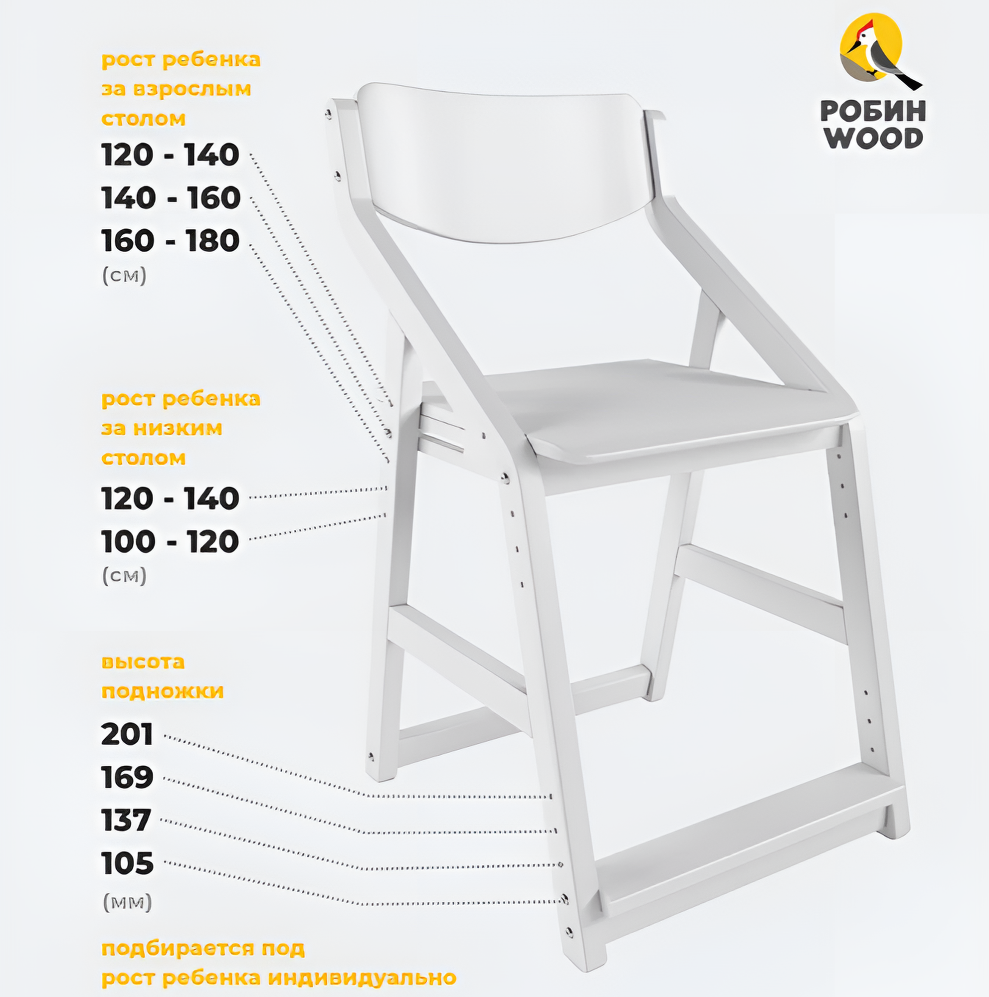 Растущий стул школьника Робин Wood с подушками, цвет: Белый/Салют