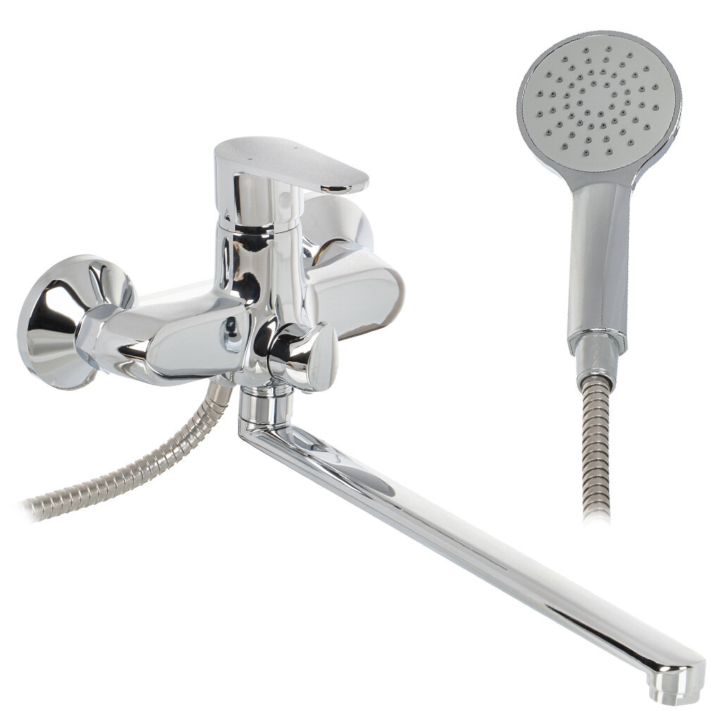 Смеситель для ванны Potato универсальный однорычажный, излив 35см, переключатель для душа, хром P2231