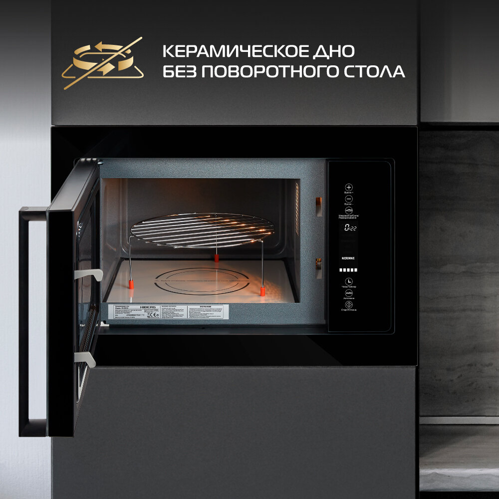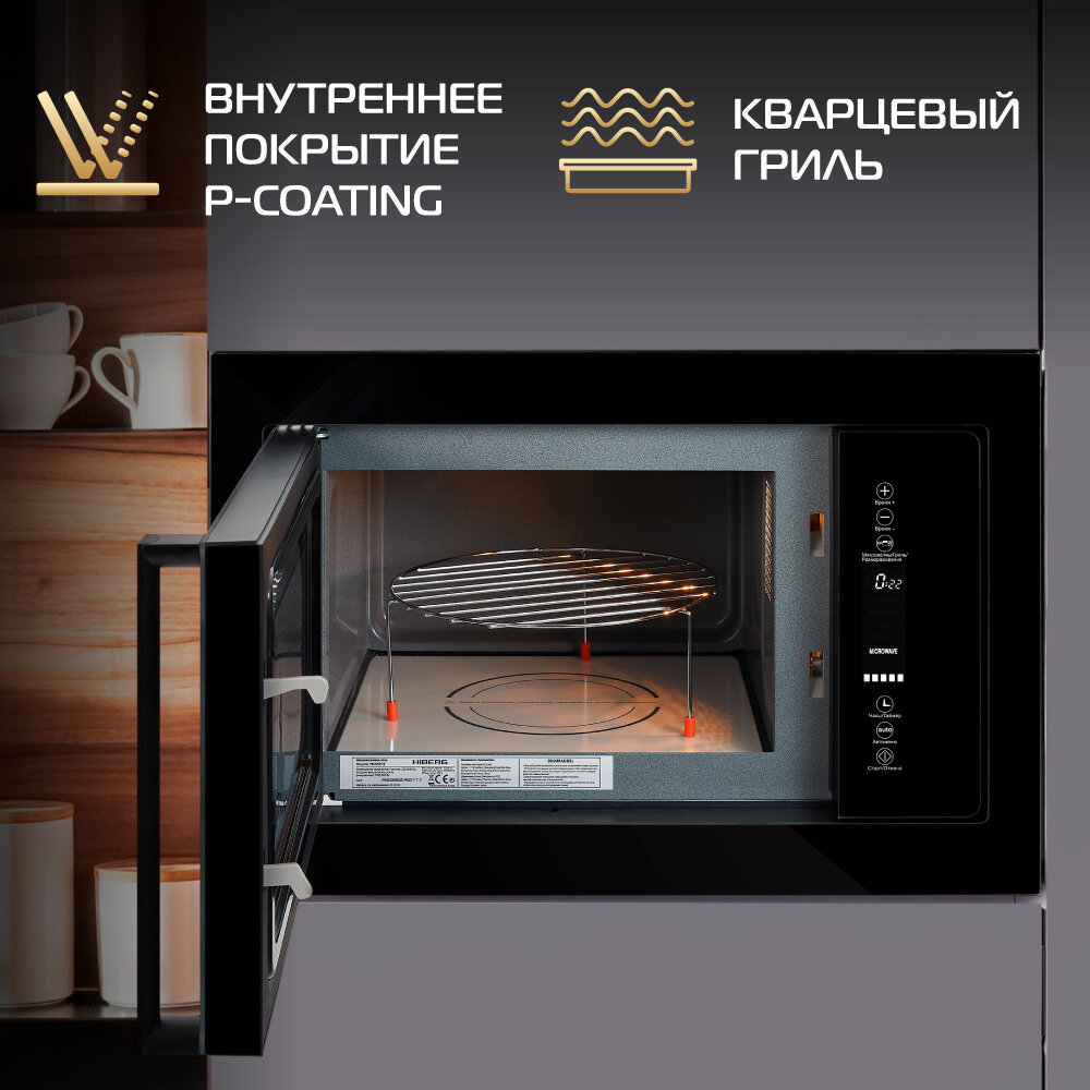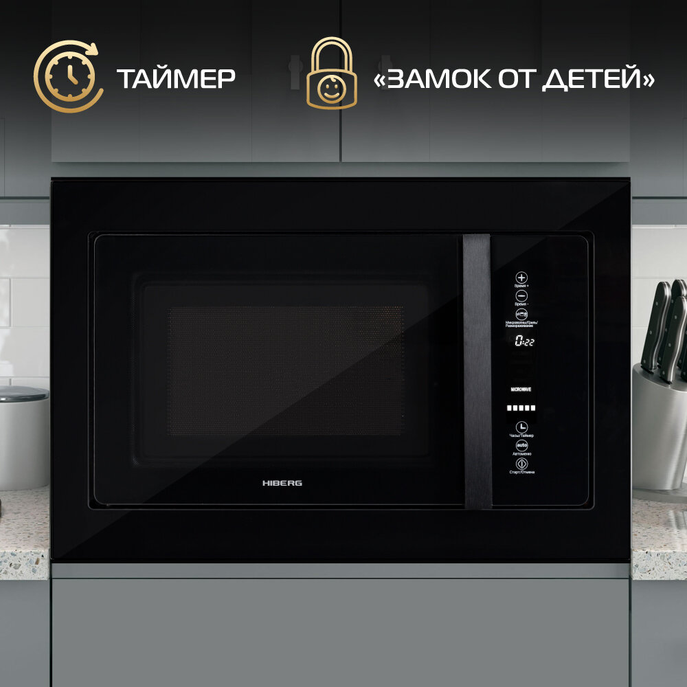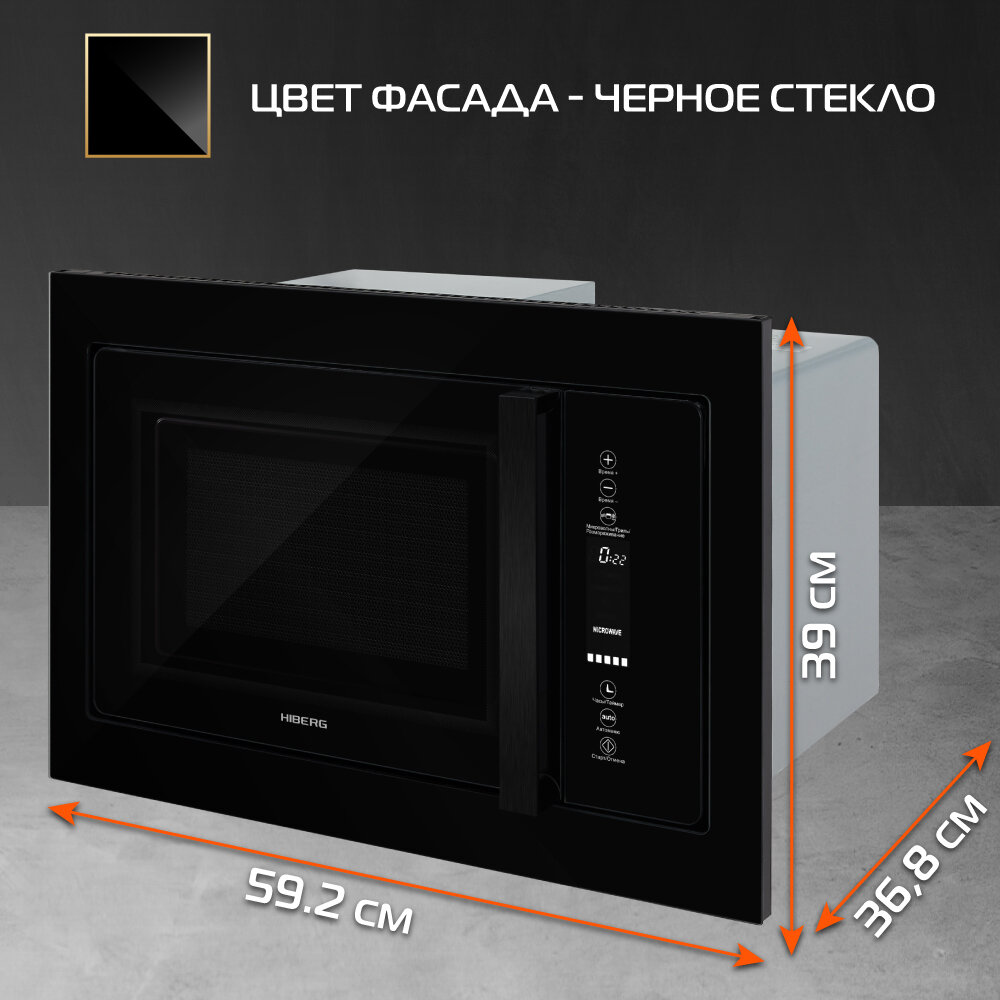 Встраиваемая микроволновая печь HIBERG VM 8505 Y , 25 л, без поворотного стола, гриль