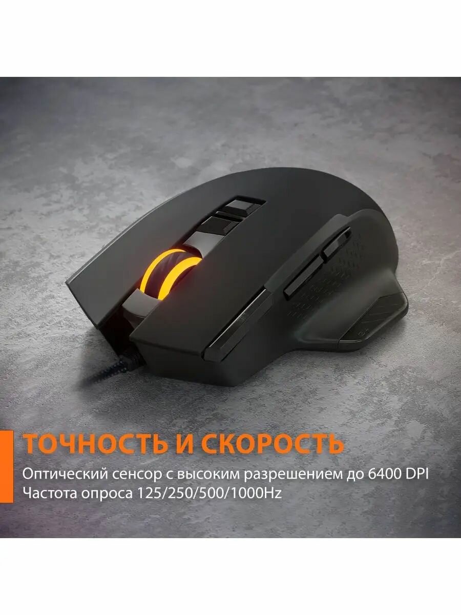 Мышь SunWind SW-M850G, игровая, проводная, 6400 dpi, USB, подсветка, чёрная