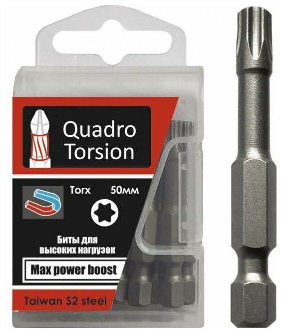 Бита 1/4" E6,3 магн., S2, зона Torsion, Torx 40-50мм (10 шт./кор.) "Quadro Torsion" (20/120) 434050 интересное: