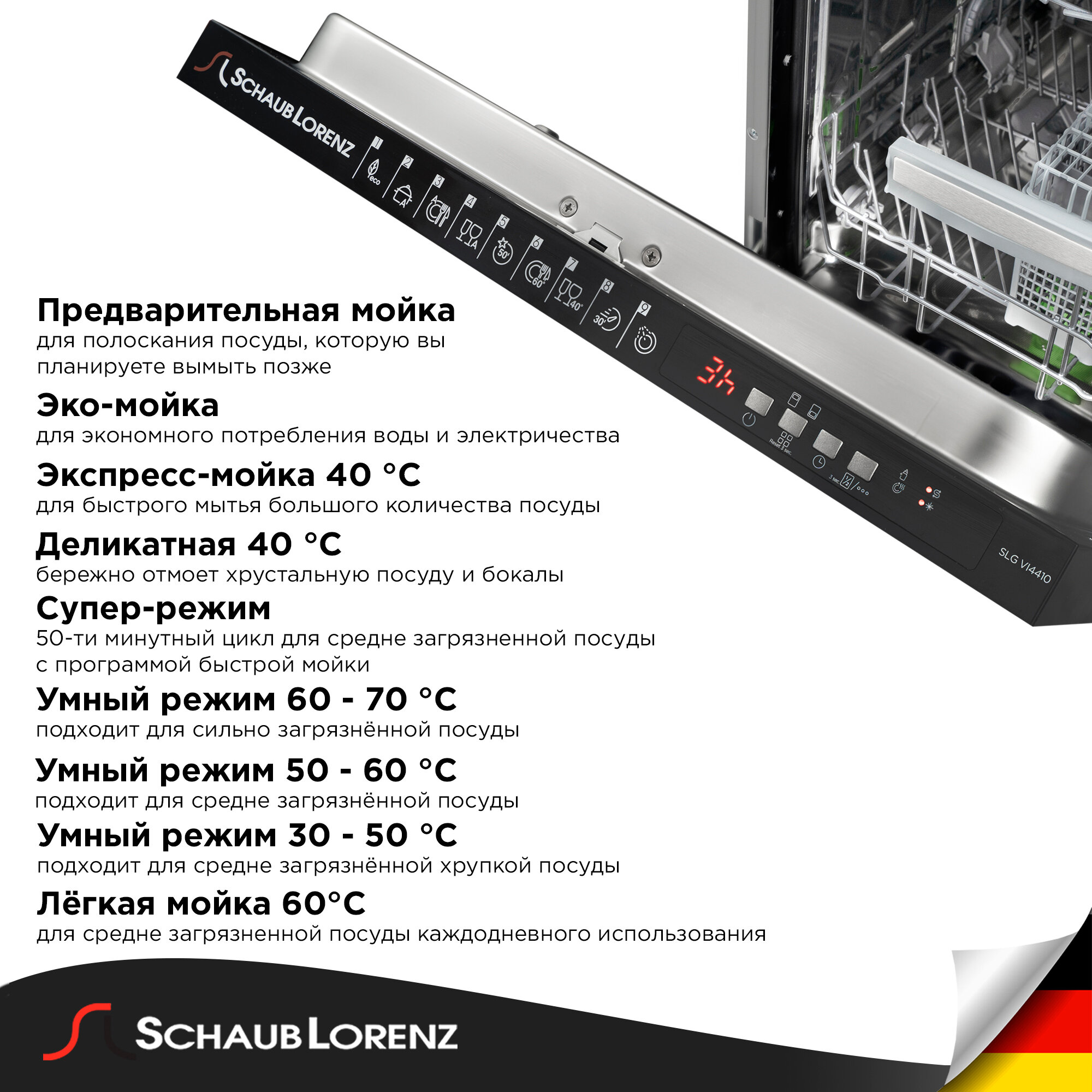 СохранитьПосудомоечная машина встраиваемая Schaub Lorenz SLG VI4410, турбосушка, сенсор мутности воды, третья полка интересное: