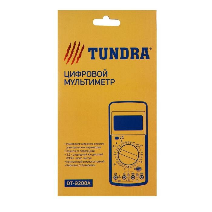Купить Тундра Мультиметр тундра DT-9208А, ACV/DCV, ACA/DCA, 200-200MΩ, 20nF-200mF, 40-400 °C, 200 kHz