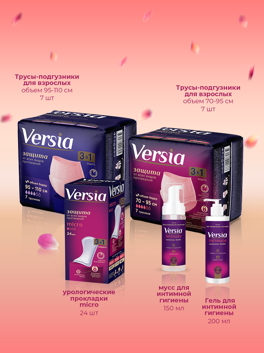 Трусы-подгузники для взрослых Versia Medium, 15х15х13 см, 7 шт, розовый, светло-розовый