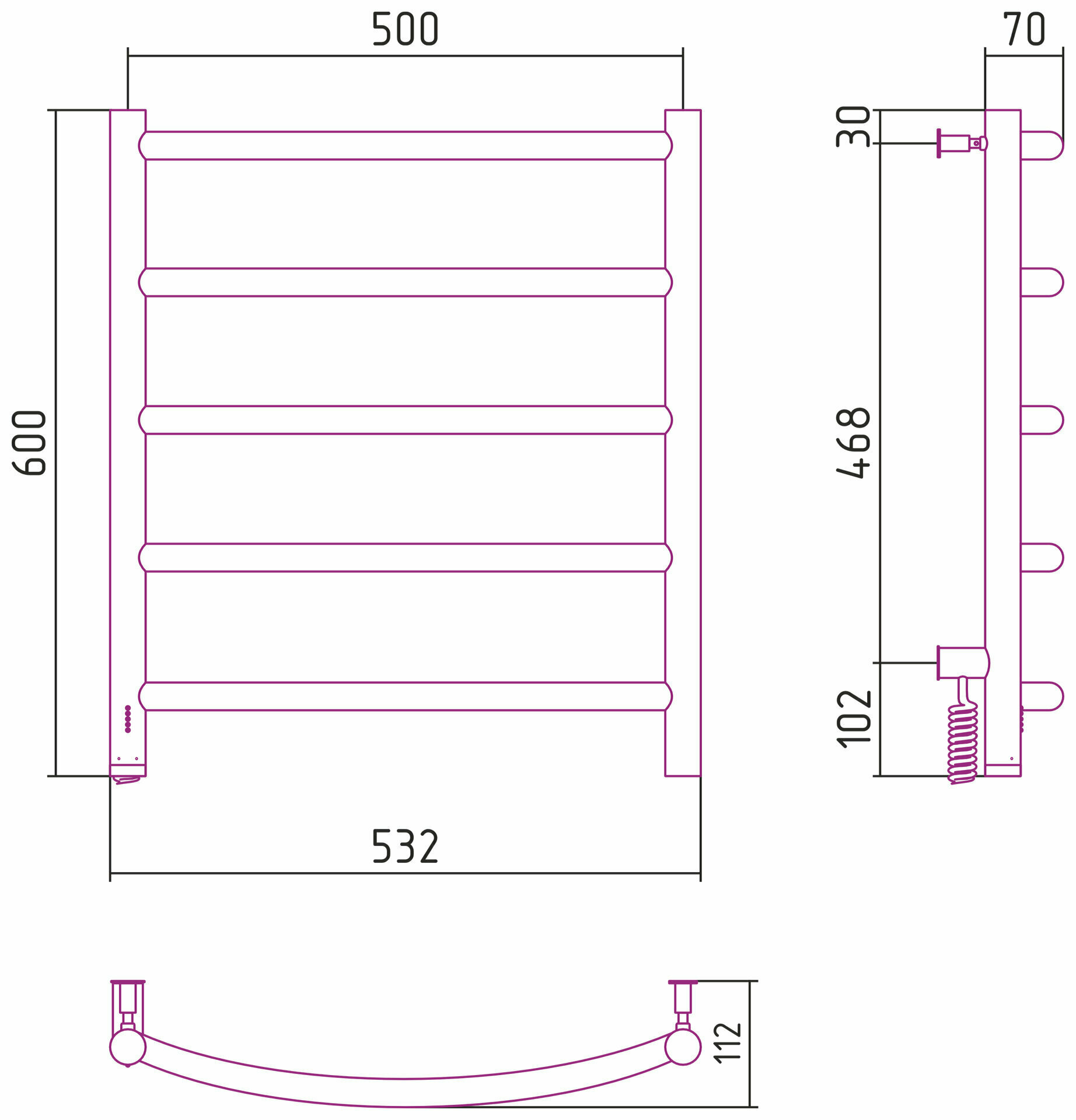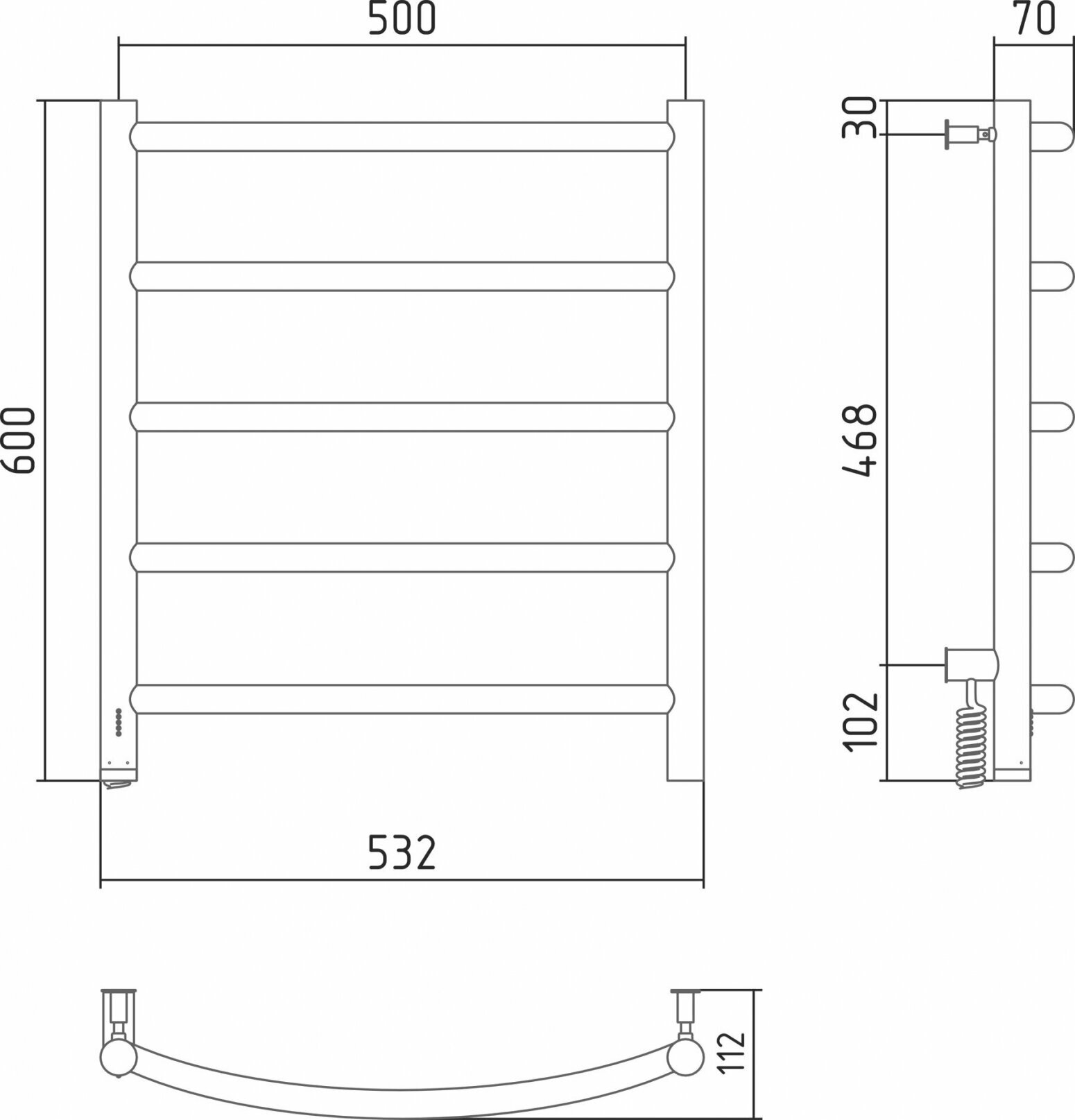 Полотенцесушитель Электрический Тругор Пэк сп 5 П 60х50 черный ВГП