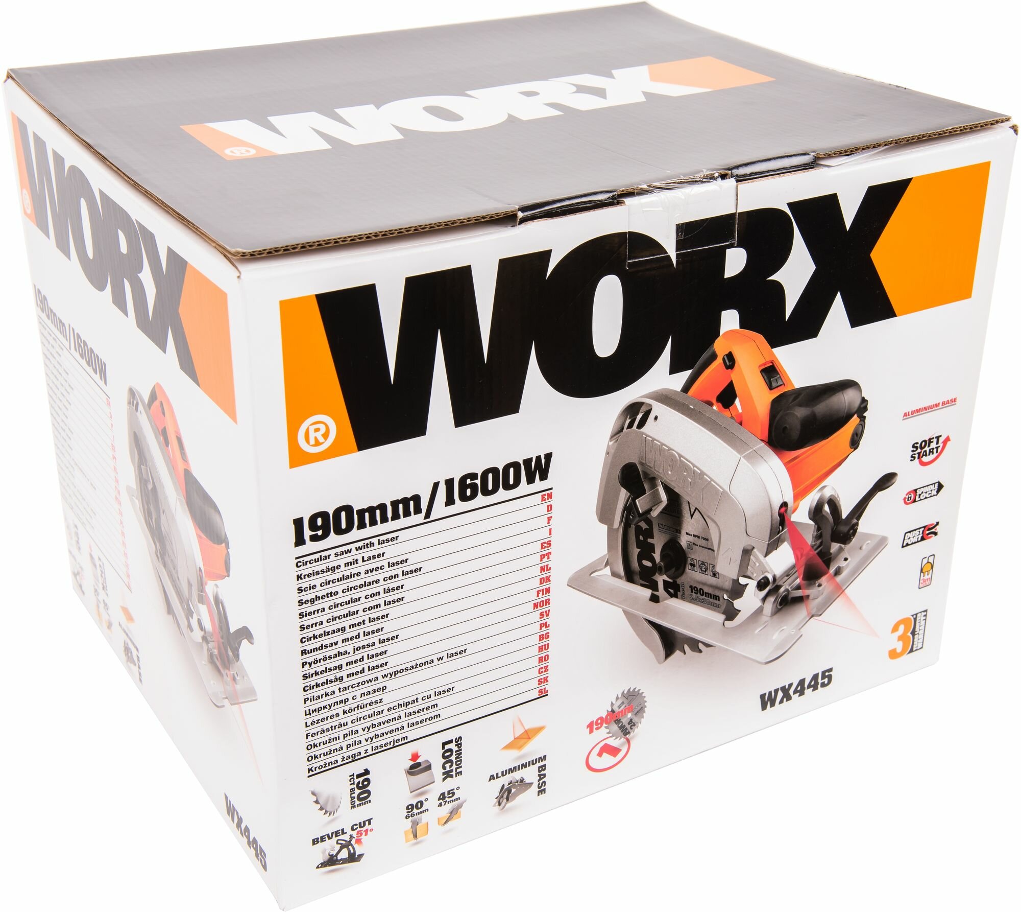 Дисковая пила сетевая Worx WX445, 190 мм, 1600 Вт, коробка