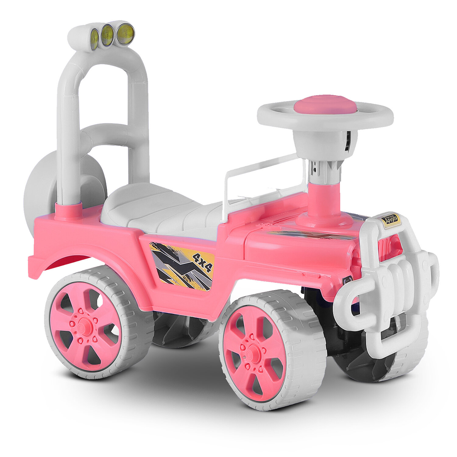 Каталка детская толокар ТМ Джамбо Тойз, внедорожник, джип, пушкар, пластиковые колеса, высокая спинка, багажник, розовый, JB5300680